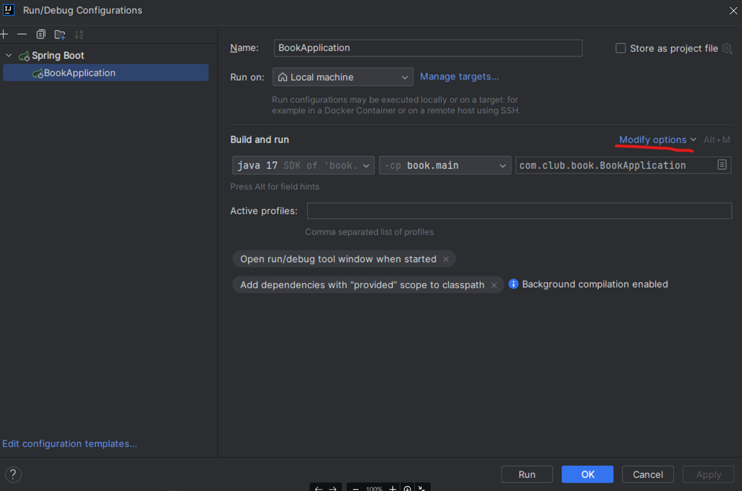 Modify options 클릭