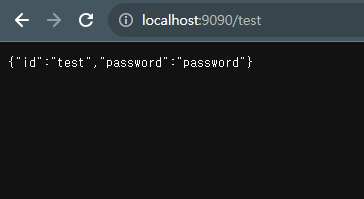 gateway의 포트 번호인 9090으로 서비스 서버의 응답을 브라우저에 확인할 수 있습니다.