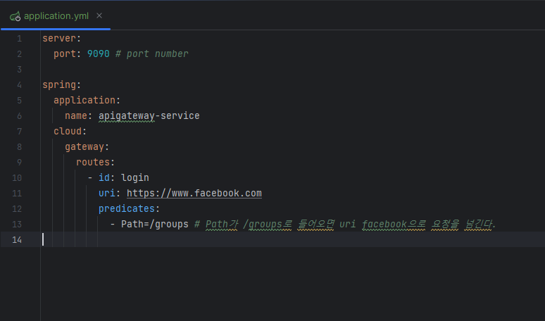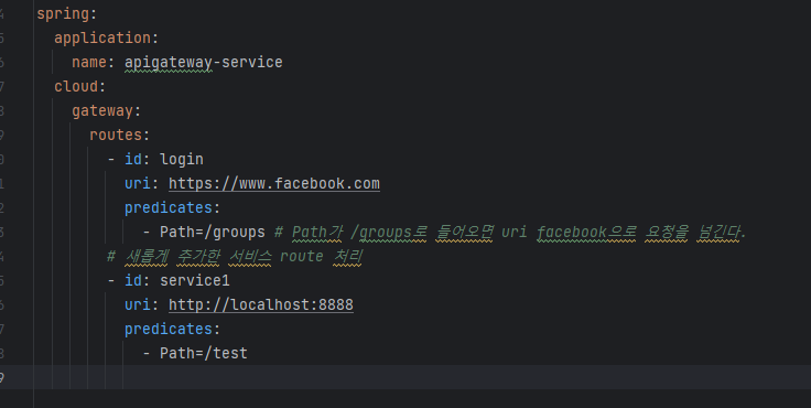 - Path=/groups # Path가 /groups로 들어오면 uri facebook으로 요청을 넘긴다.