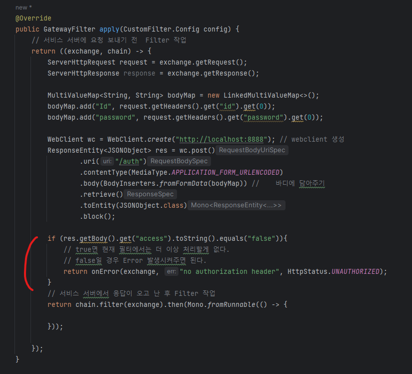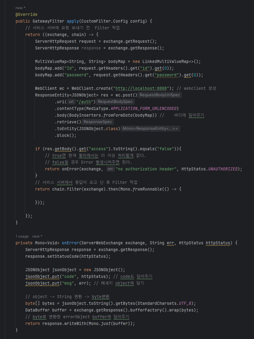 1. Gateway Filter 내에서 다른 서버와 통신